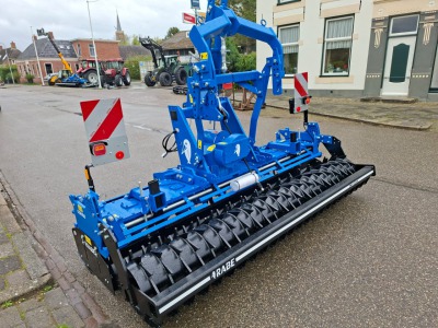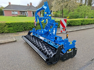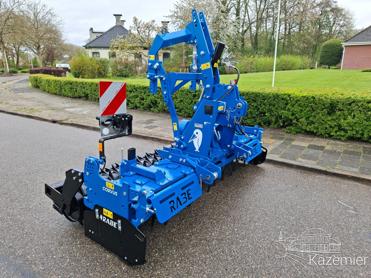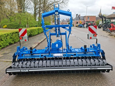 Rabe Corvus PKE 3011 3mtr. 12 rotoren, schroefvormig en slepend gemonteerd. Aftakastoeren 540/750/1000. Aftakas met nokkenkoppeling, max 210pk. Geharde en beklede tanden. Wegverlichting met markeringsborden. 510mm packerwals met kristal geharde afstrijkers. Egalisatiebord met spindel verstelling. Hydraulische hef, Drill-Lift. Hefbegrenzer voor Drill-Lift. Optioneel met sporenwissers, doorgaande aftakas, etc. leverbaar. |